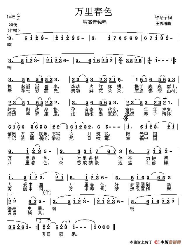 致谢:《中国曲谱网》衷心感谢作者老师馈赠原版歌谱!