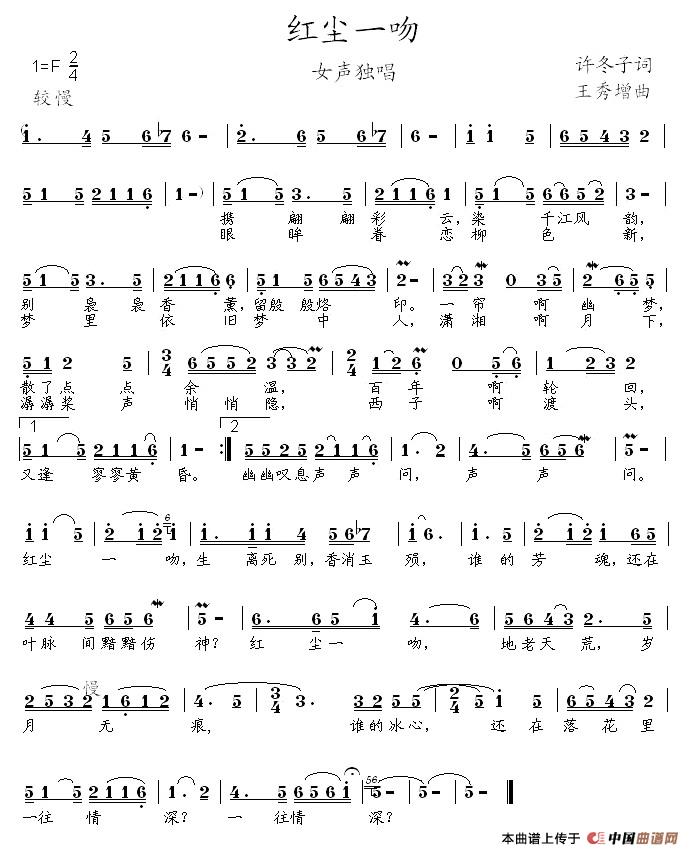 致谢:《中国曲谱网》衷心感谢作者老师馈赠原版歌谱!