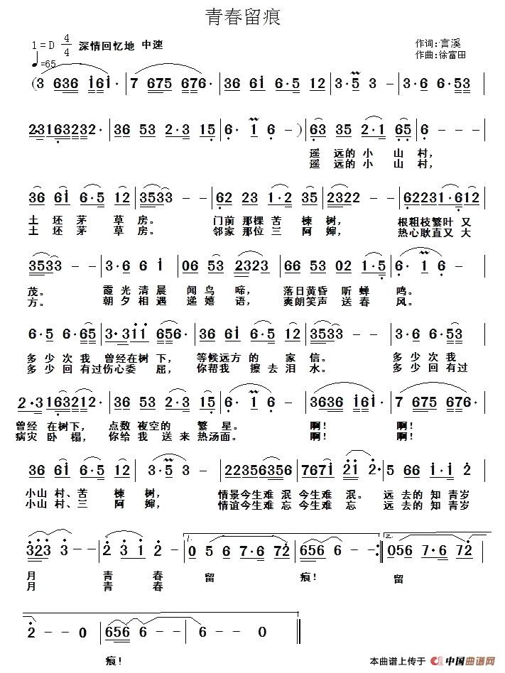 关于《青春留痕》曲谱的评论