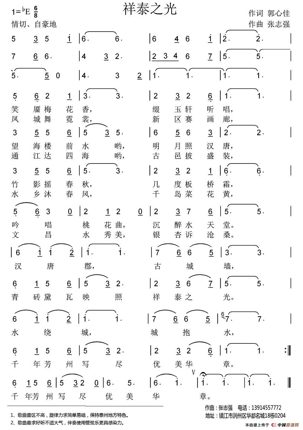 关于《祥泰之光》曲谱的评论