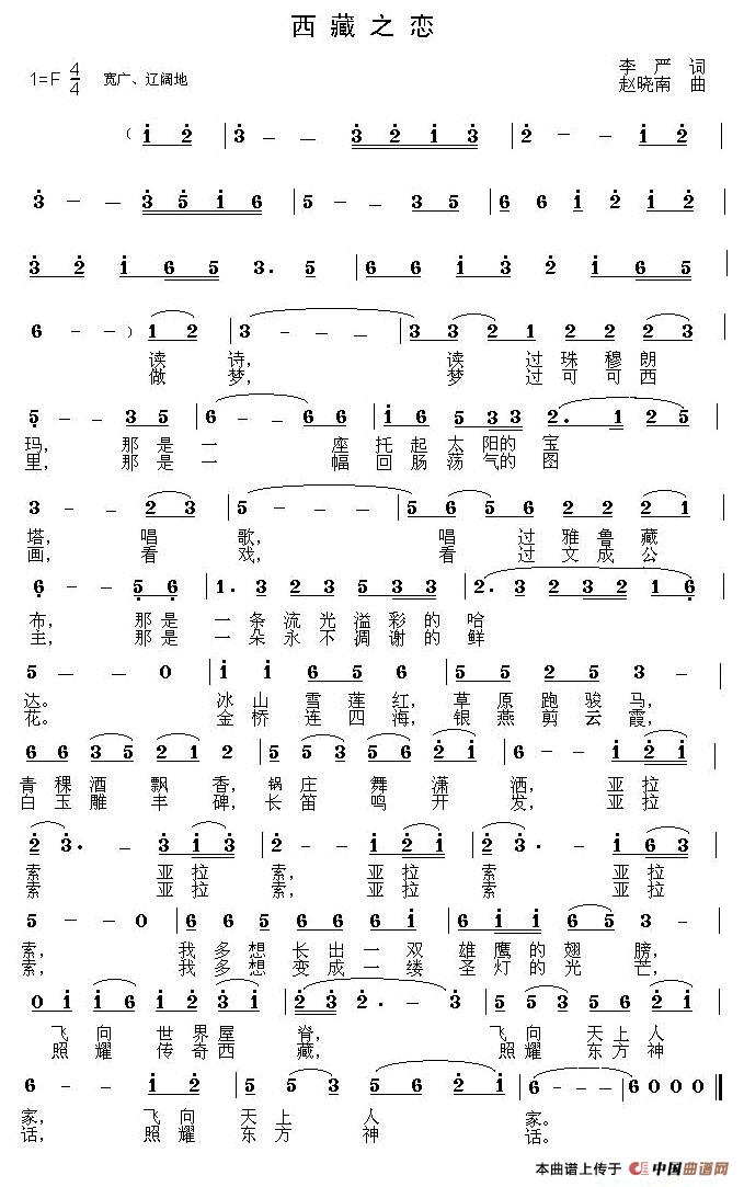 当前位置: 首页 民歌曲谱 四字歌名 西藏之恋(李严词 赵晓南曲)
