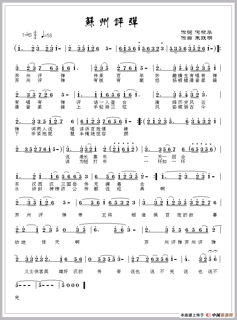 致谢:《中国曲谱网》衷心感谢作者老师馈赠原版歌谱!