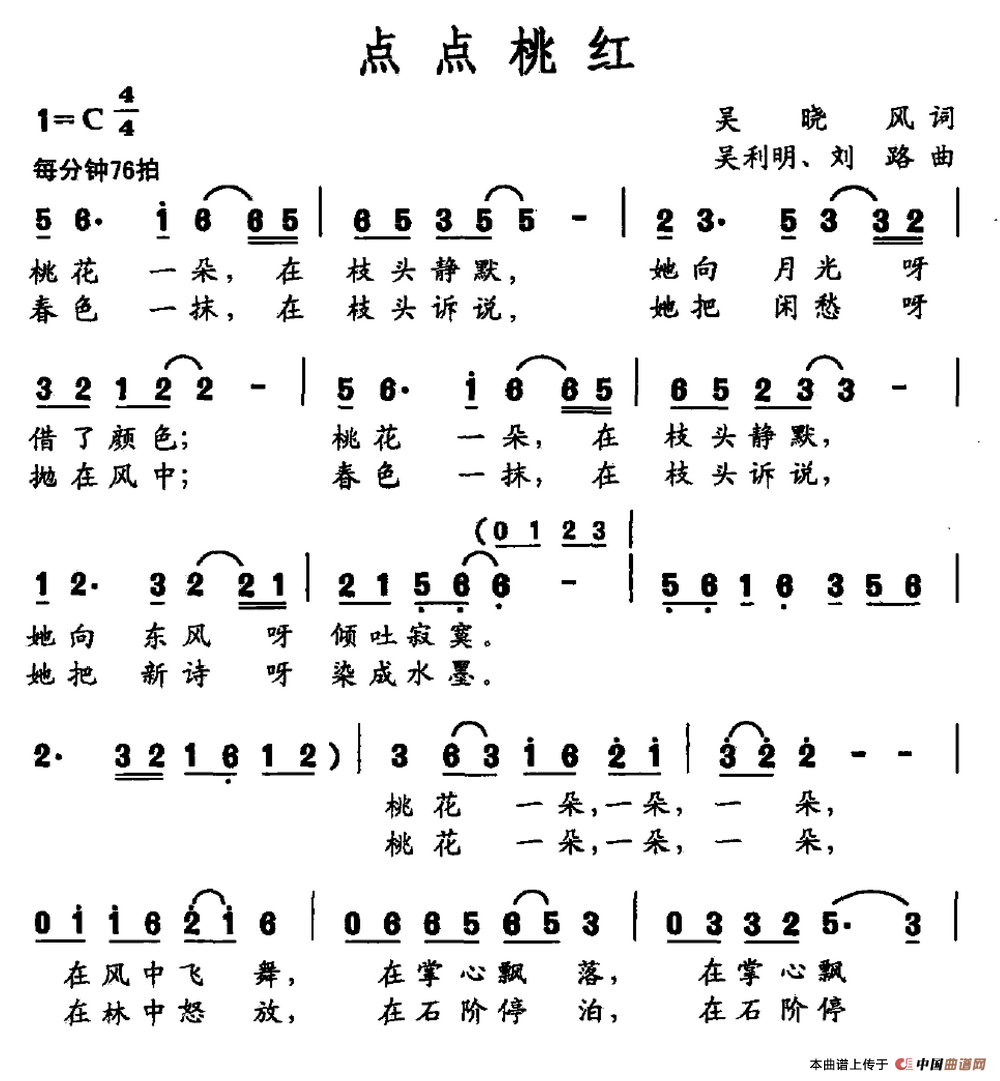 关于《点点桃红》曲谱的评论