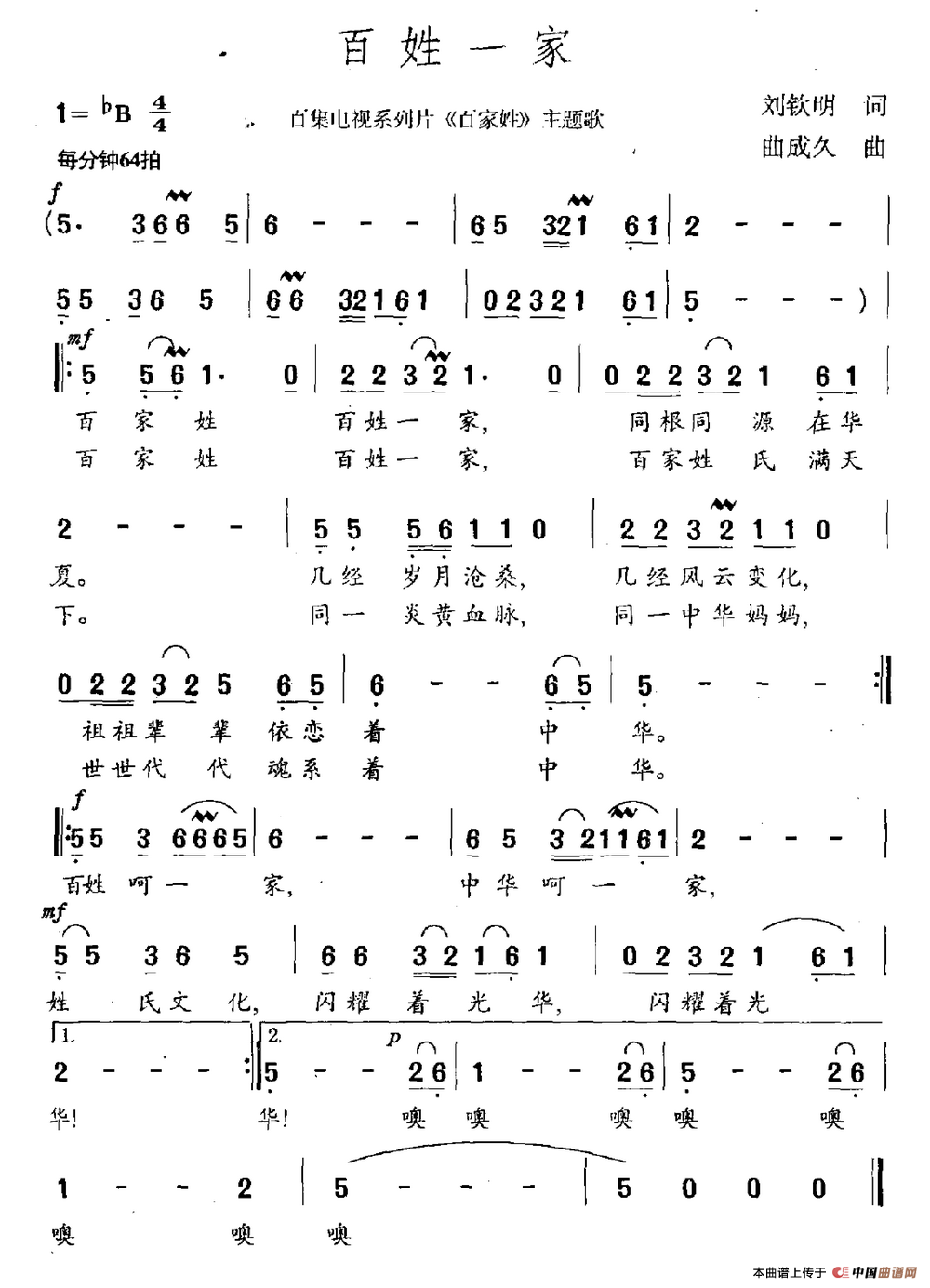 关于《百姓一家》曲谱的评论