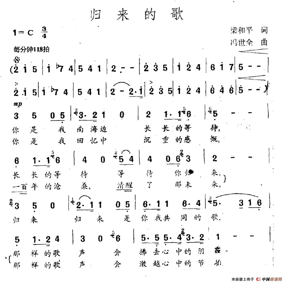 归来归来是你我共同的歌,那样的歌声会激越心中的节拍。
