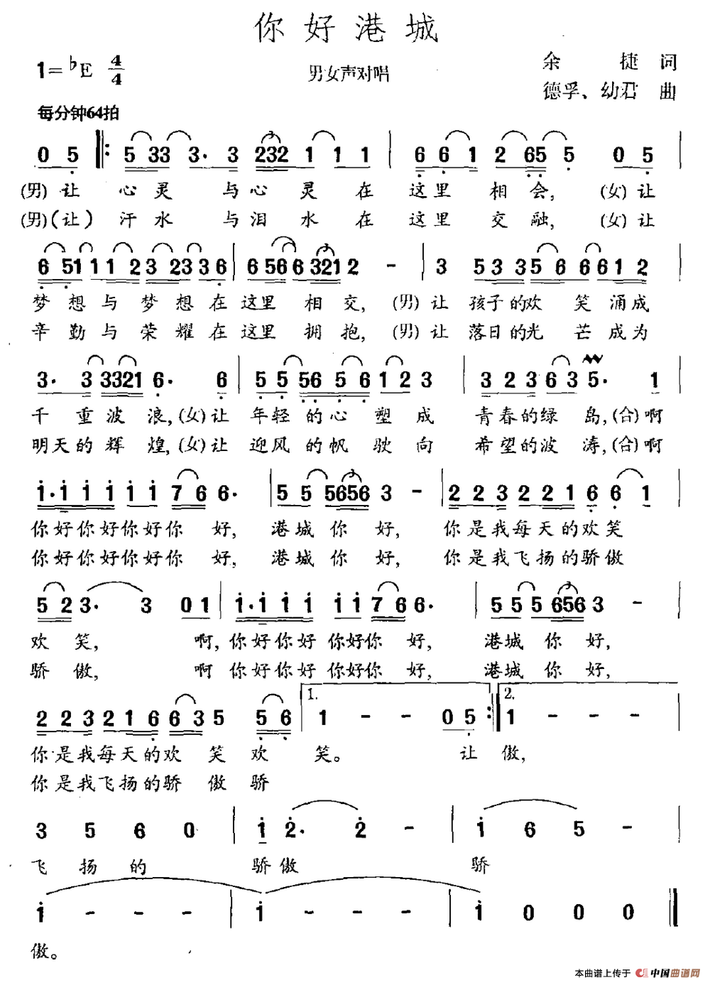 作词:余捷 作曲:德孚 幼君 来源:《中国曲谱网》 上传:沉舟侧畔过