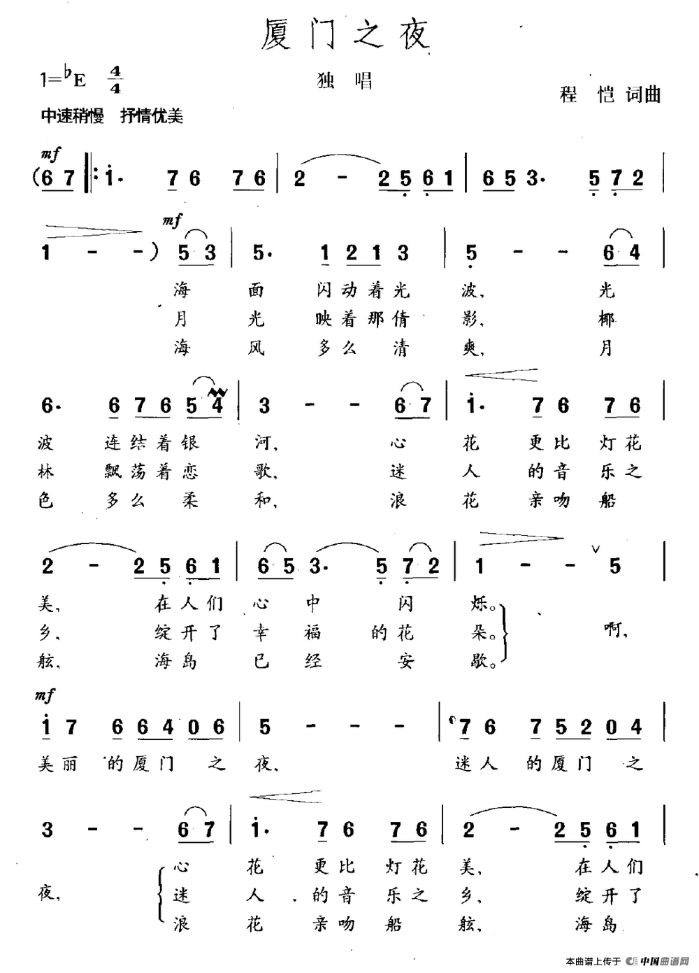 关于《厦门之夜》曲谱的评论