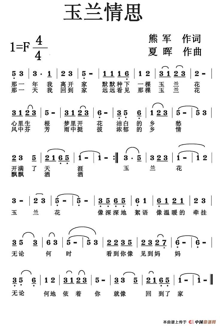 关于《玉兰情思》曲谱的评论