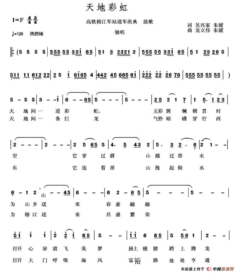 关于《天地彩虹》曲谱的评论