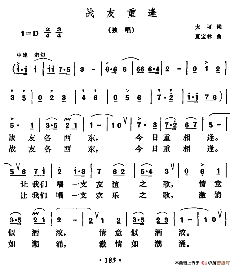 关于《战友重逢》曲谱的评论