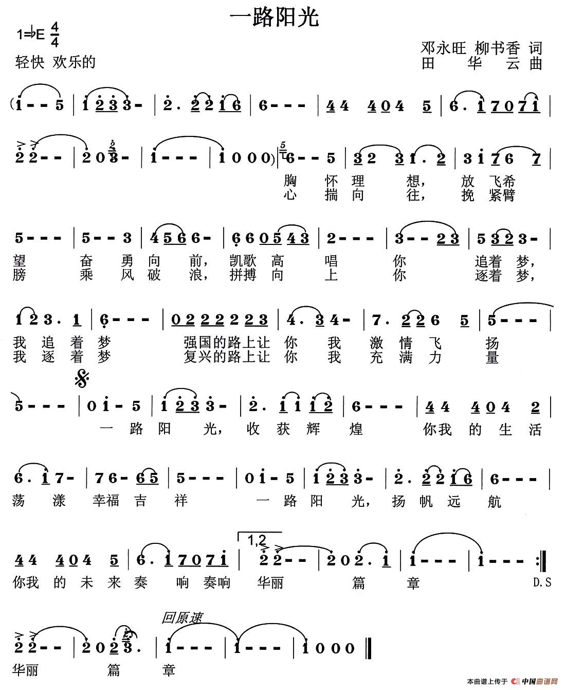 一路阳光(邓永旺、柳书香词 田华云曲)