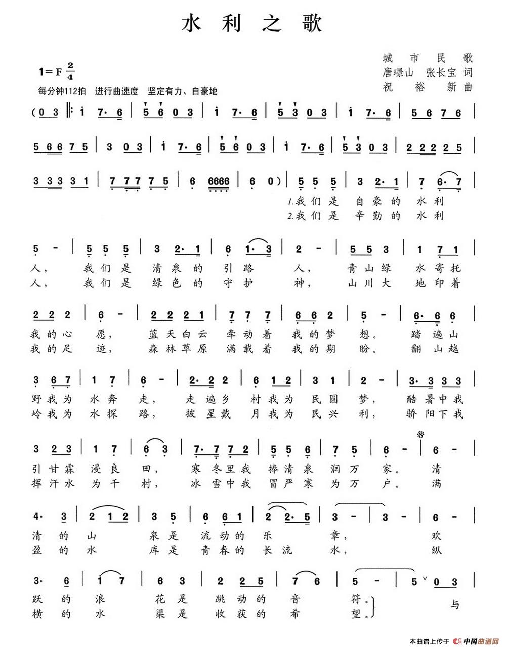 水利之歌(唐璟山 张长宝词 祝裕新曲)