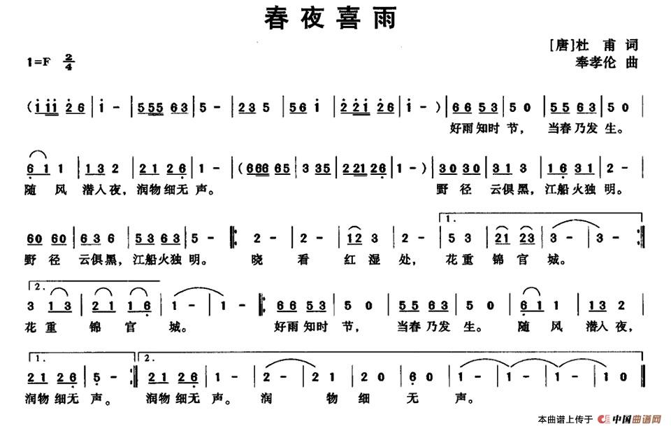 关于《春夜喜雨》曲谱的评论