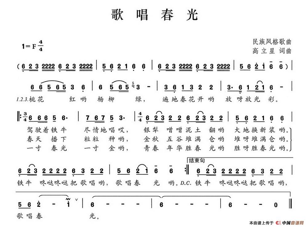关于《歌唱春光》曲谱的评论
