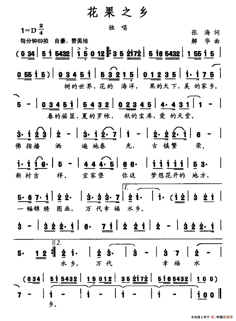 关于《花果之乡》曲谱的评论