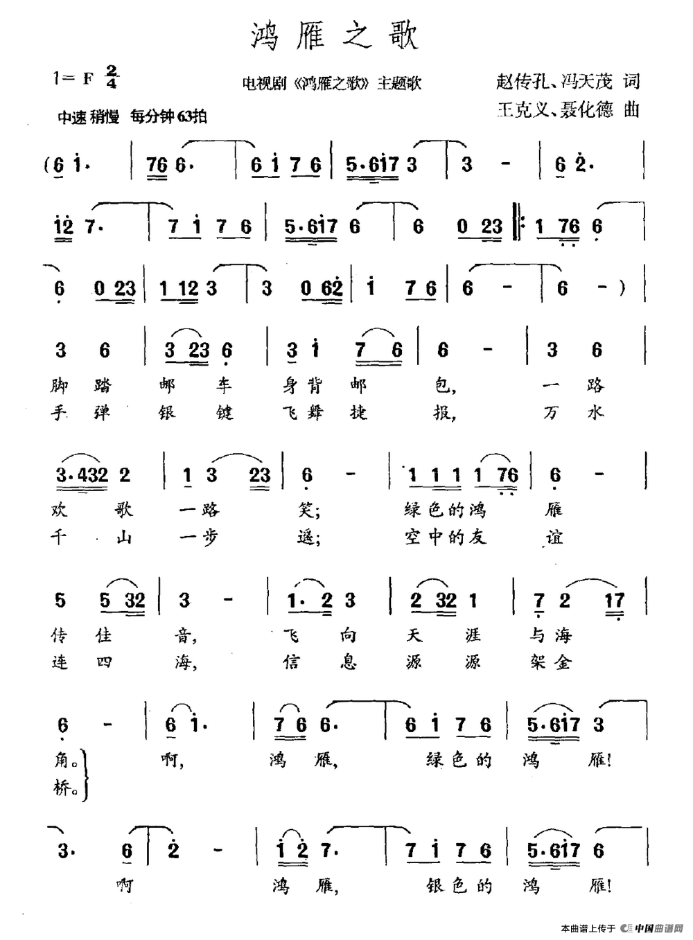 作词:赵传孔 冯天茂 作曲:王克义 聂化德 来源:《中国曲谱网》 上传:沉舟侧畔过
