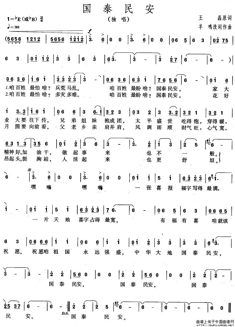 作词:王磊原 作曲:羊鸣改 格式:简谱 来源:《中国曲谱网》 上传:秋叶起舞