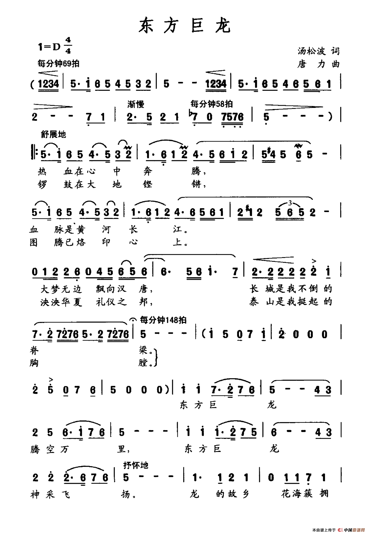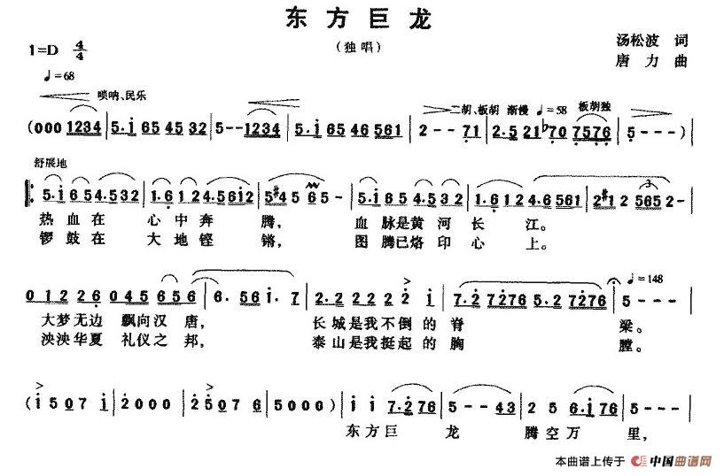 关于《东方巨龙》曲谱的评论