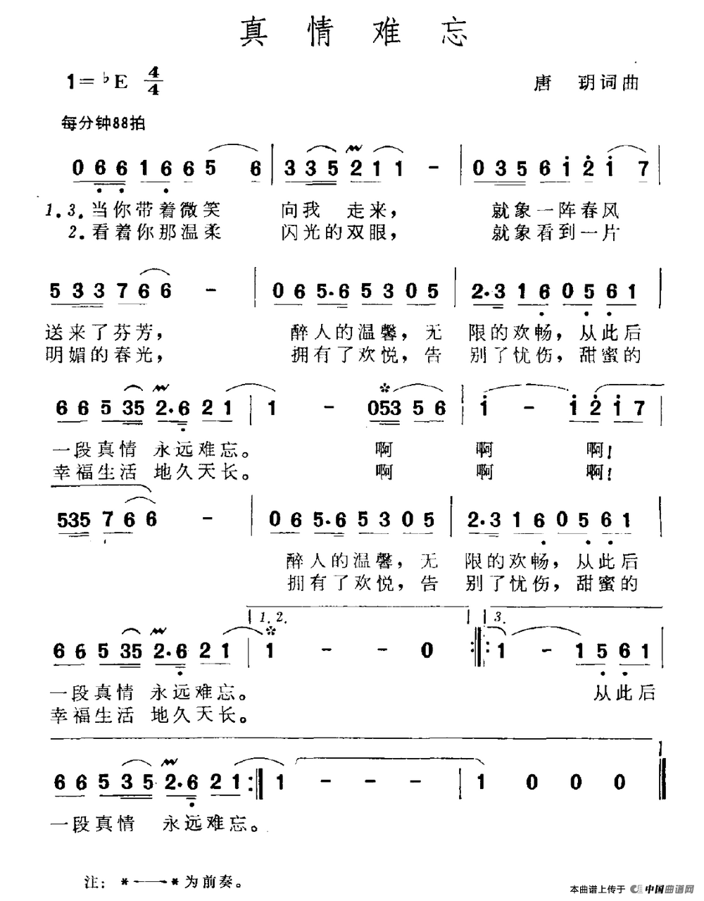 关于《真情难忘》曲谱的评论