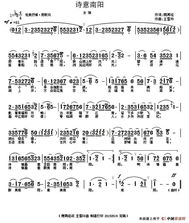 关于《诗意南阳》曲谱的评论