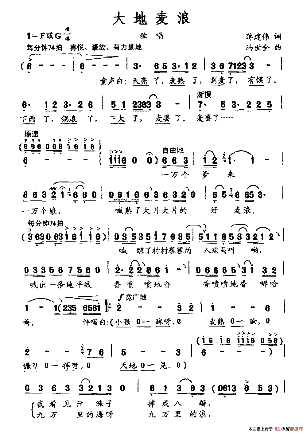 关于《大地麦浪》曲谱的评论