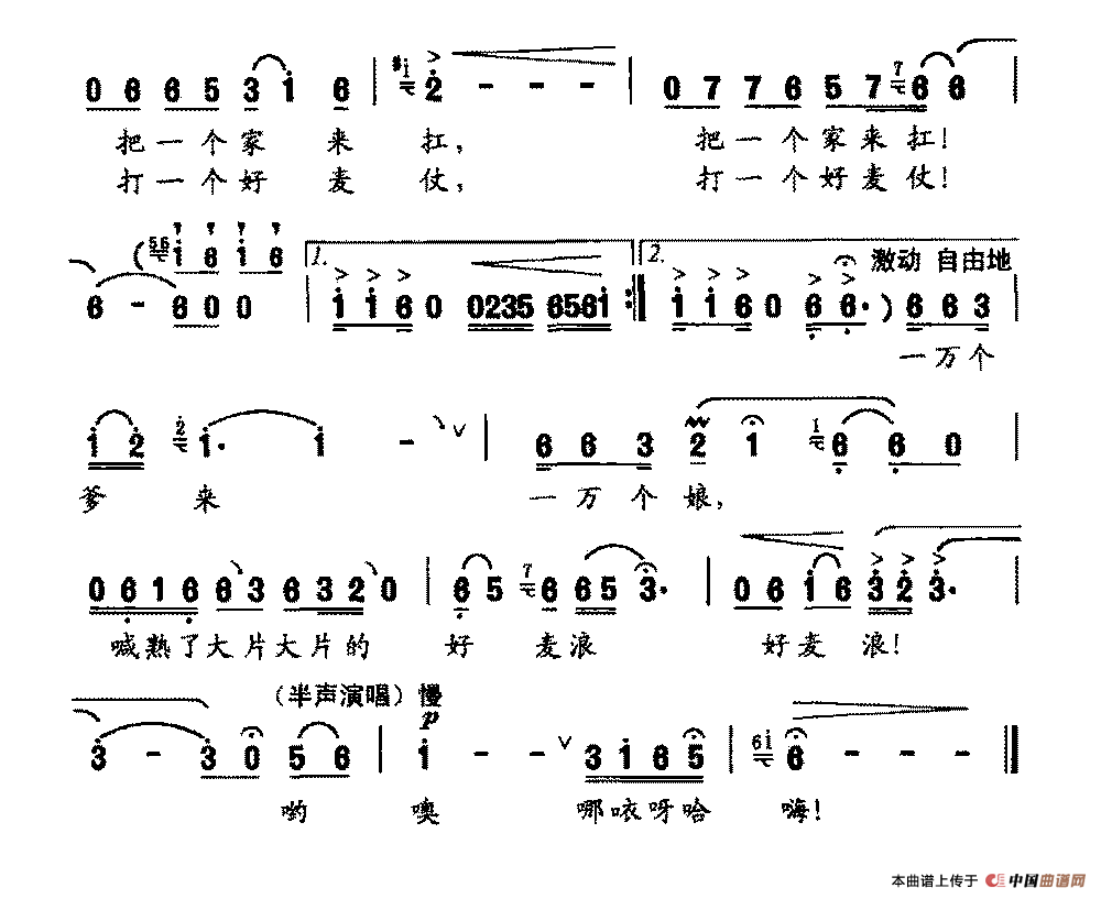 我亲溜溜的麦子啊,一闻我就想得慌,白面馍汤面条比啥都亲哟,上顿下顿把咱养哪哈嗨。