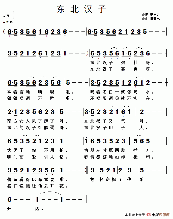 关于《东北汉子》曲谱的评论