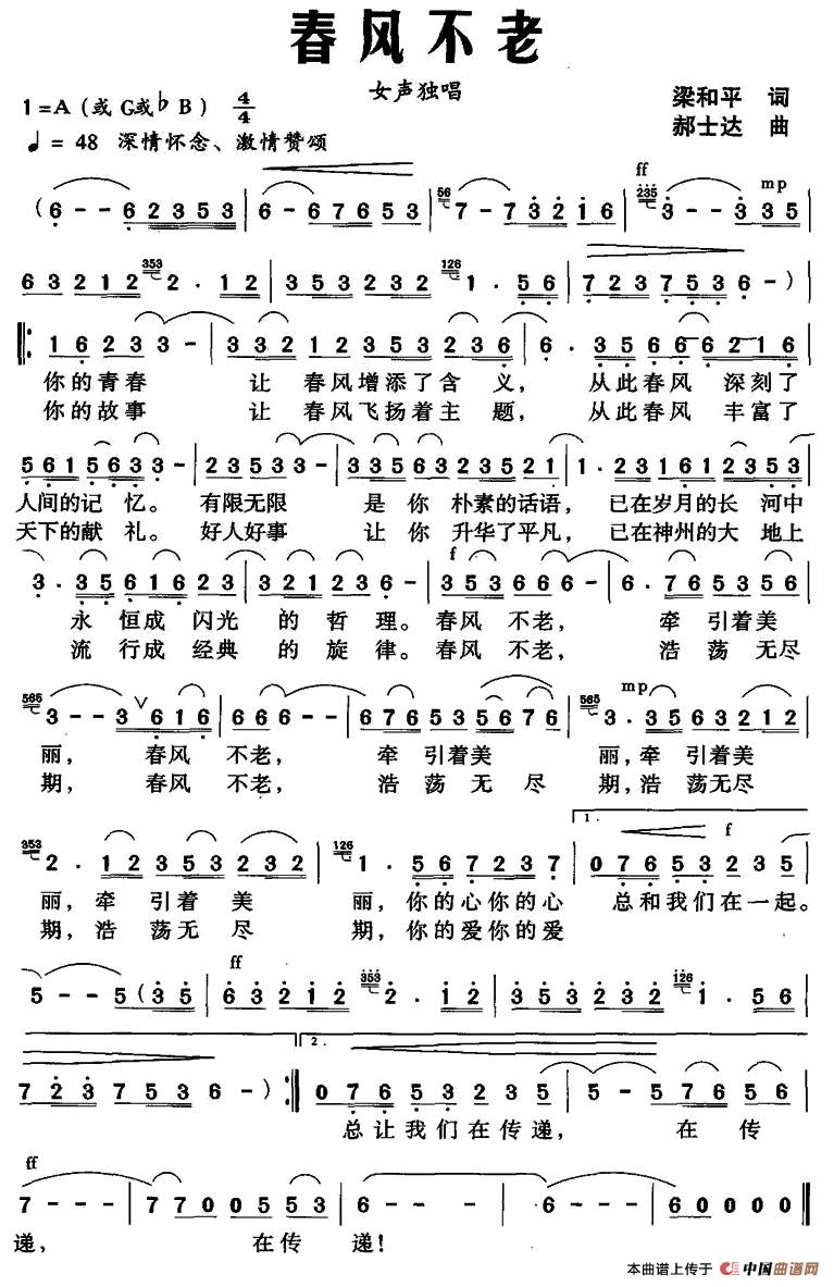 关于《春风不老》曲谱的评论