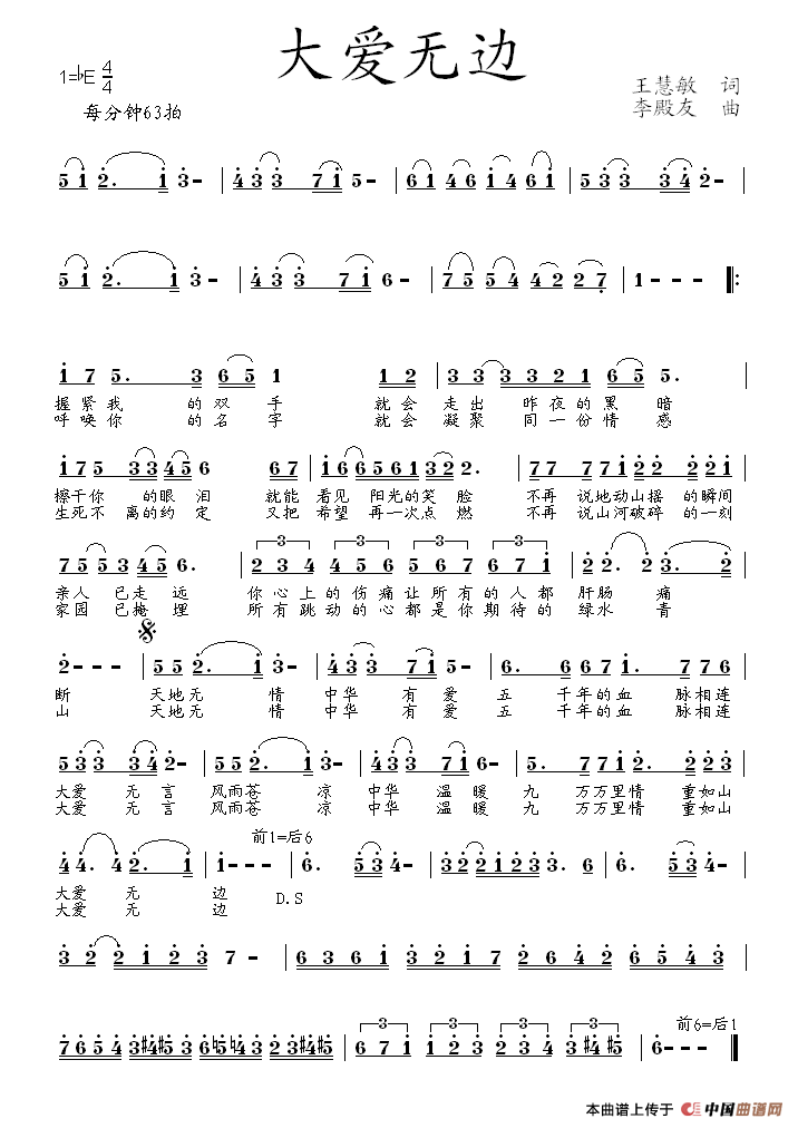 致谢:《中国曲谱网》衷心感谢作者老师馈赠原版歌谱!