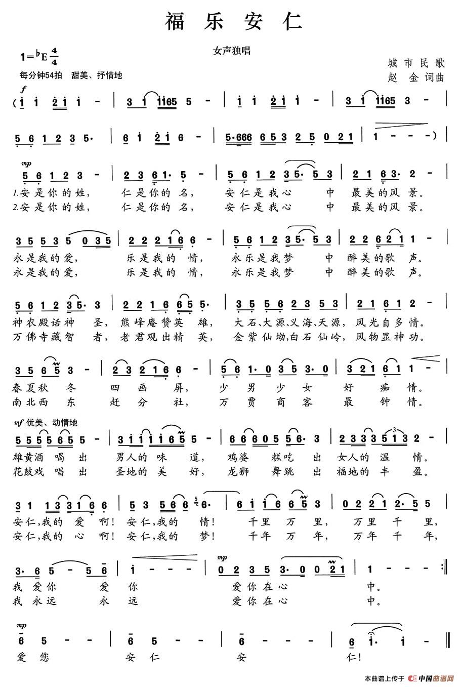关于《富乐安仁》曲谱的评论