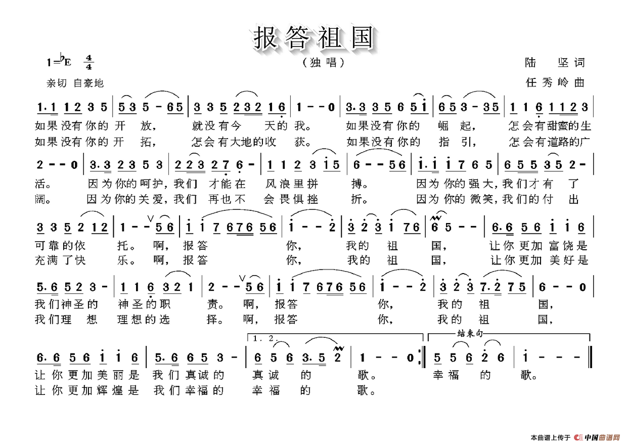 致谢:《中国曲谱网》衷心感谢作者老师馈赠原版歌谱!