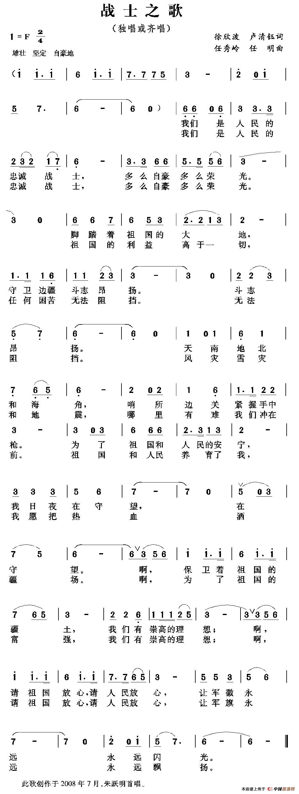 关于《战士之歌》曲谱的评论