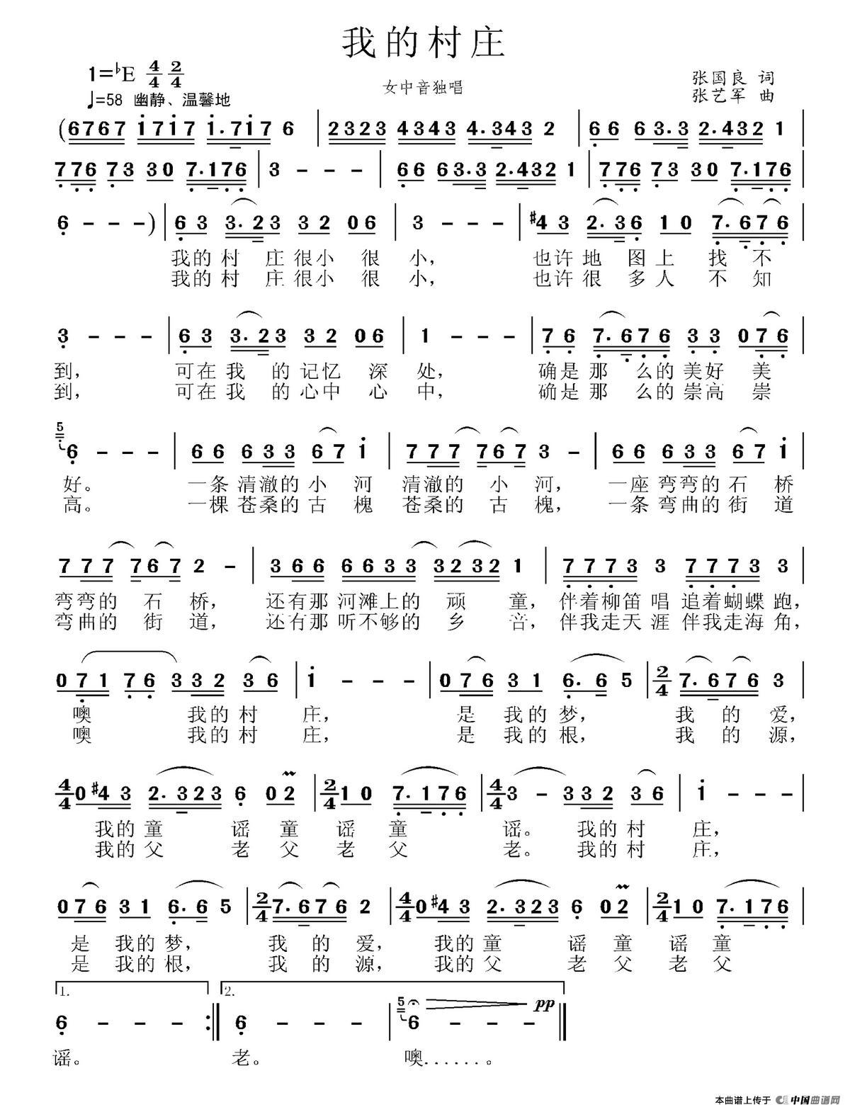 关于《我的村庄》曲谱的评论