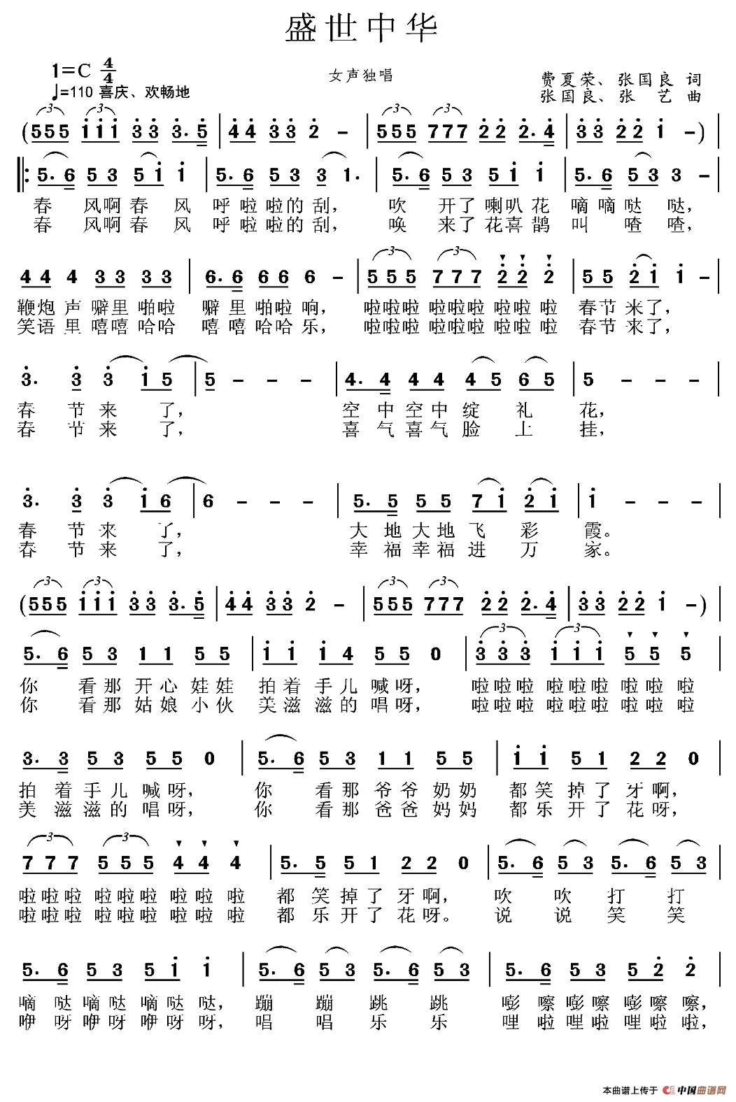 盛世中华(费夏荣 张国良词 张国良 张艺曲)