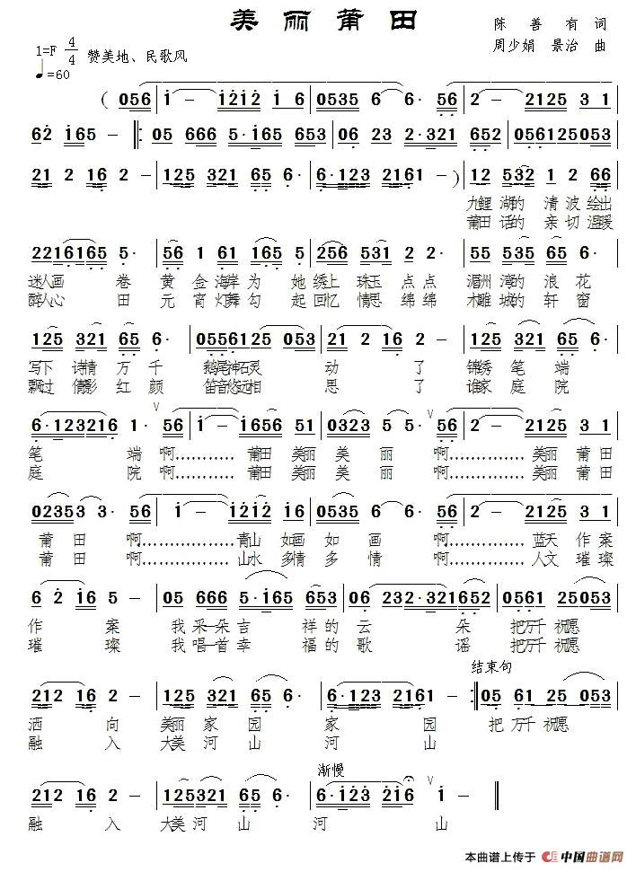 关于《美丽莆田》曲谱的评论