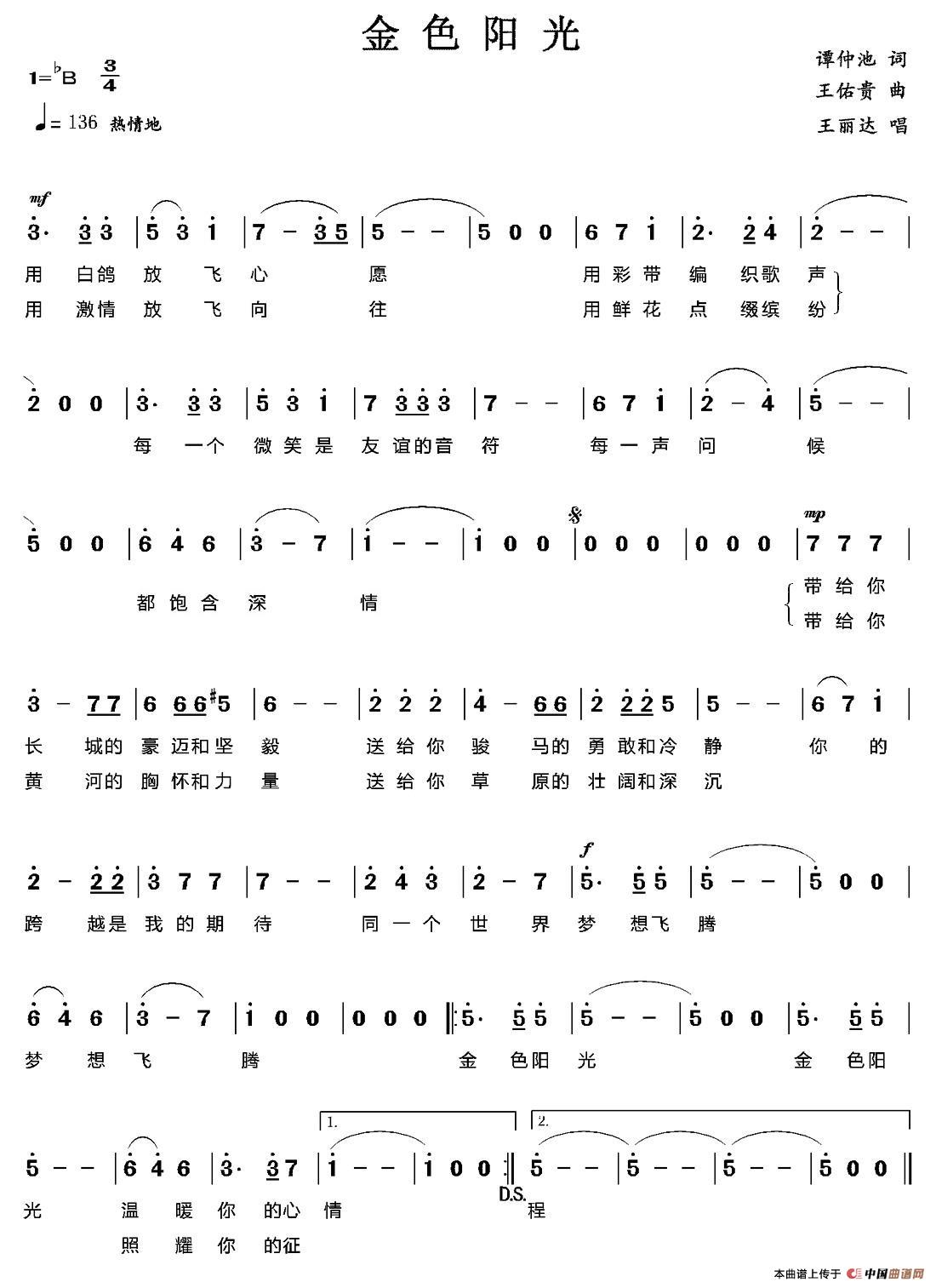 关于《金色阳光》曲谱的评论