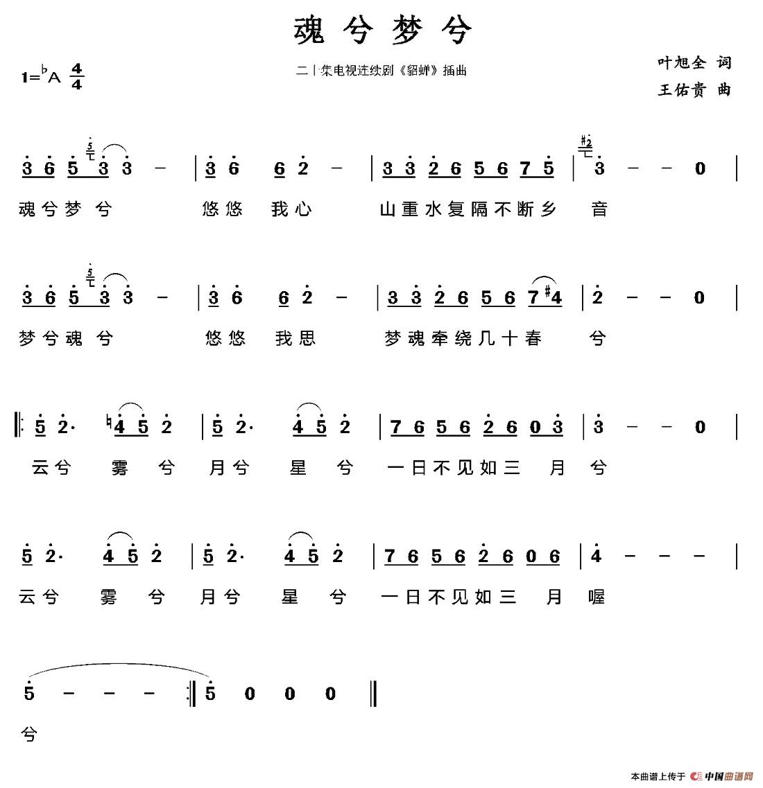 关于《魂兮梦兮》曲谱的评论