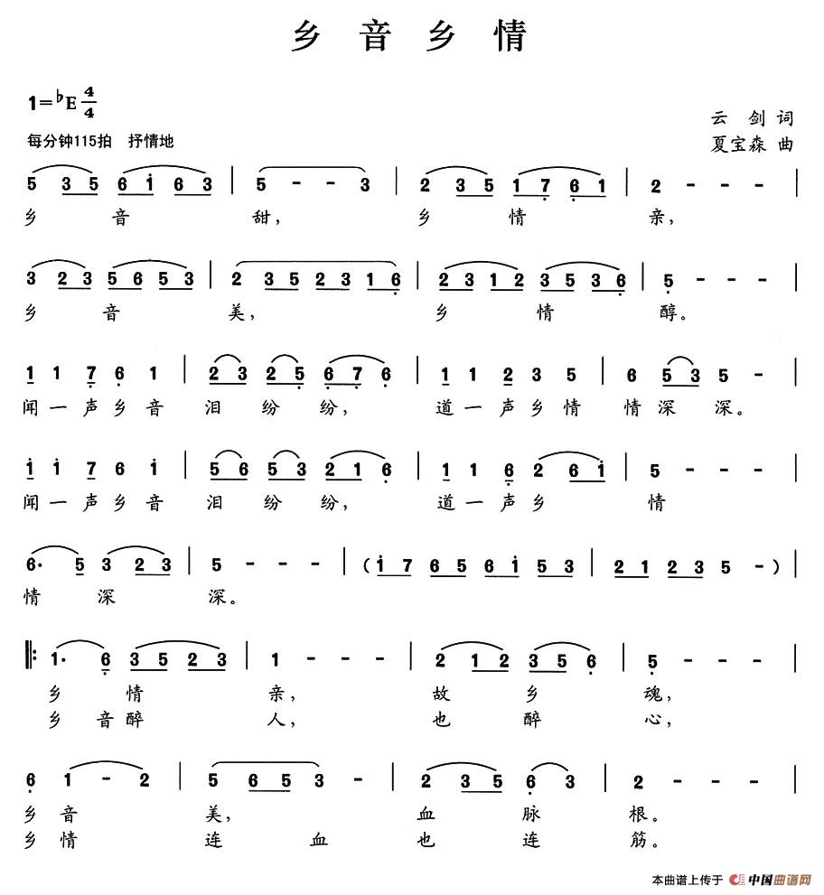 关于《乡音乡情》曲谱的评论