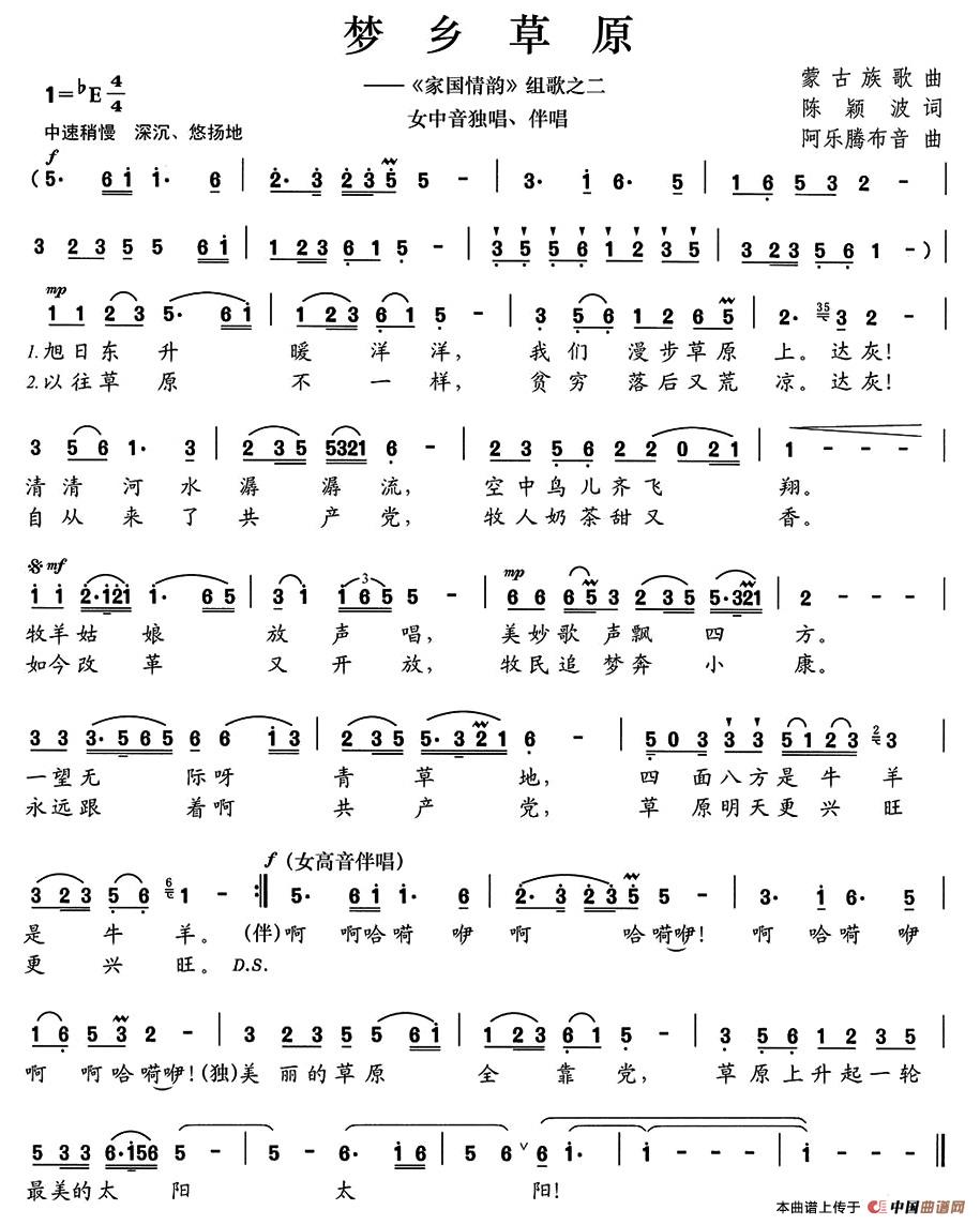关于《梦乡草原》曲谱的评论