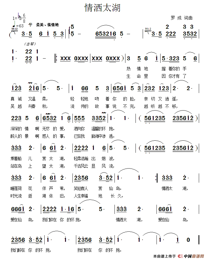 关于《情洒太湖》曲谱的评论