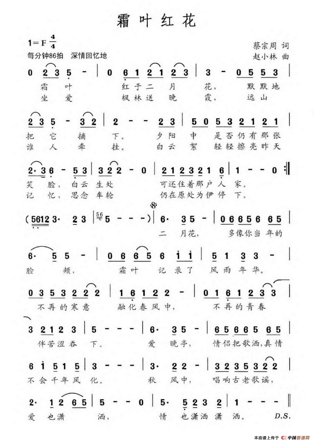 关于《霜叶红花》曲谱的评论
