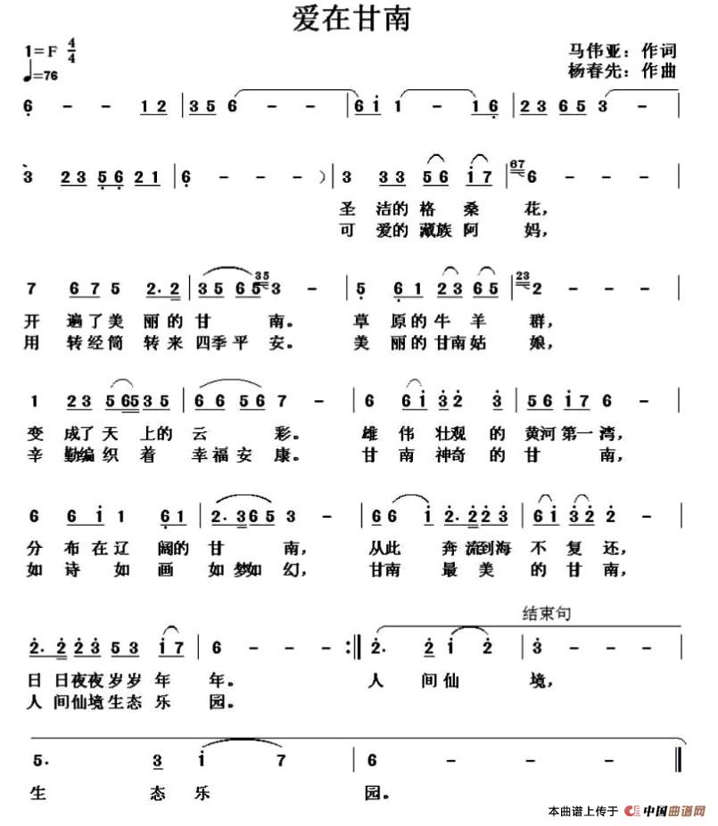 关于《爱在甘南》曲谱的评论