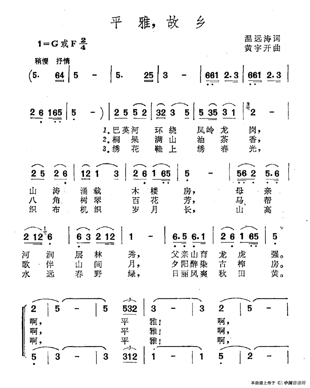 作词:温远涛 作曲:黄宇开 来源:《中国曲谱网》 上传:沉舟侧畔过