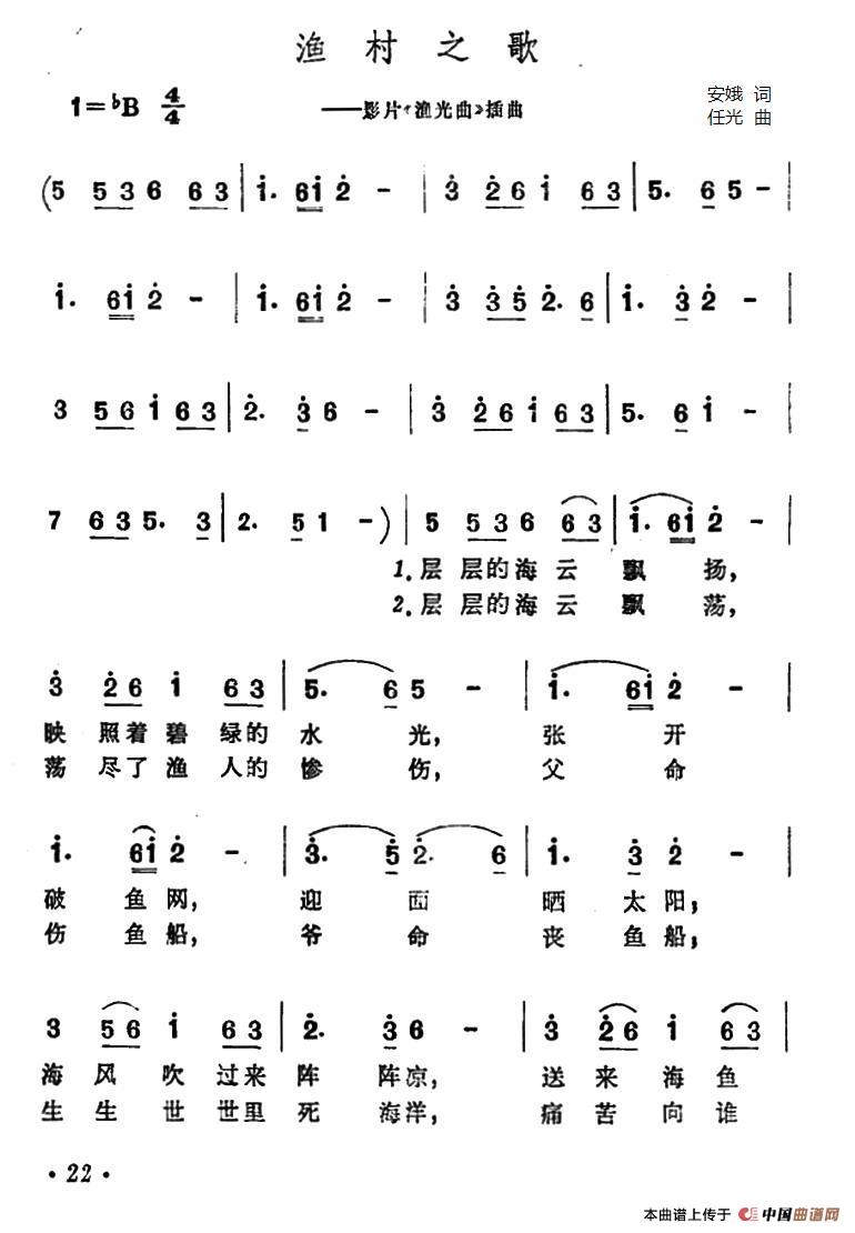 关于《渔村之歌》曲谱的评论