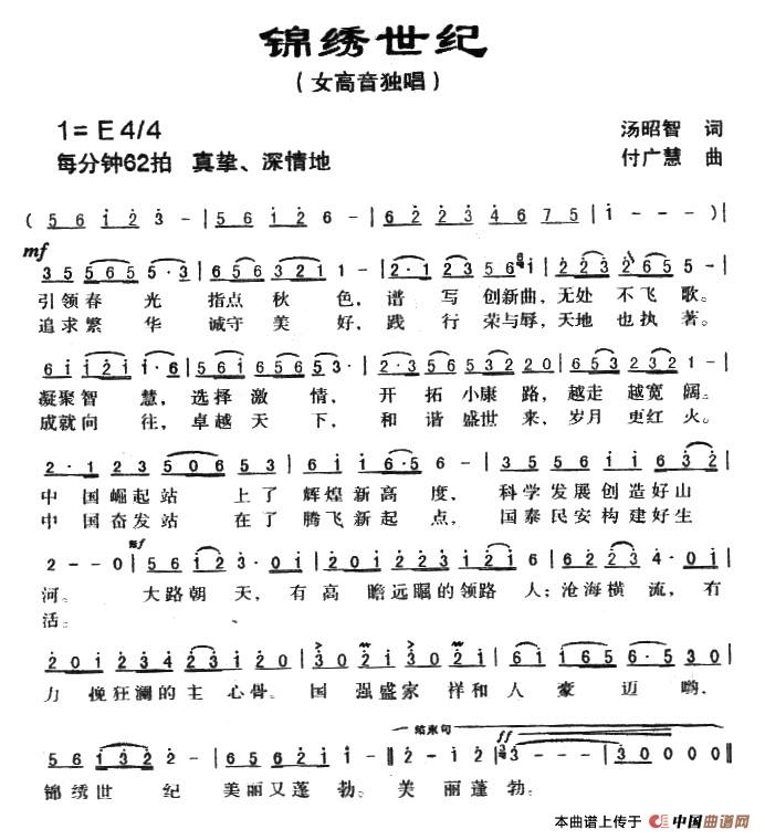 致谢:《中国曲谱网》衷心感谢作者老师馈赠原版歌谱!