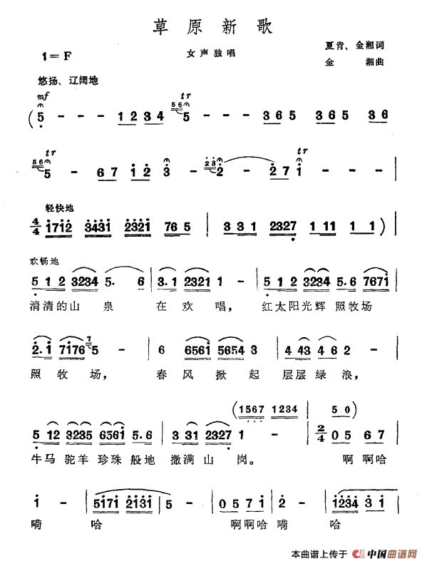 草原新歌(夏肯 金湘词 金湘曲)