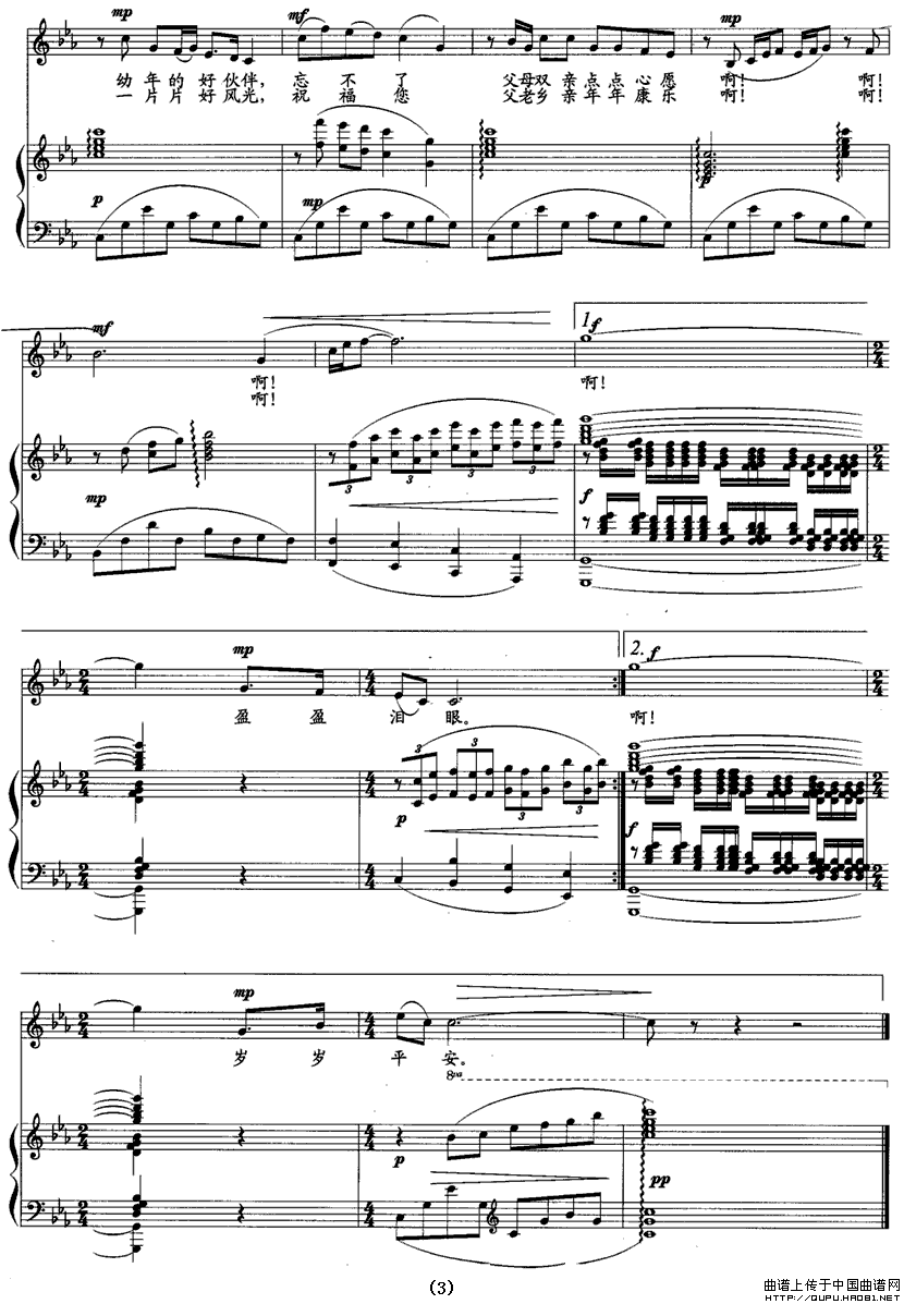 关于《老古井边》曲谱的评论