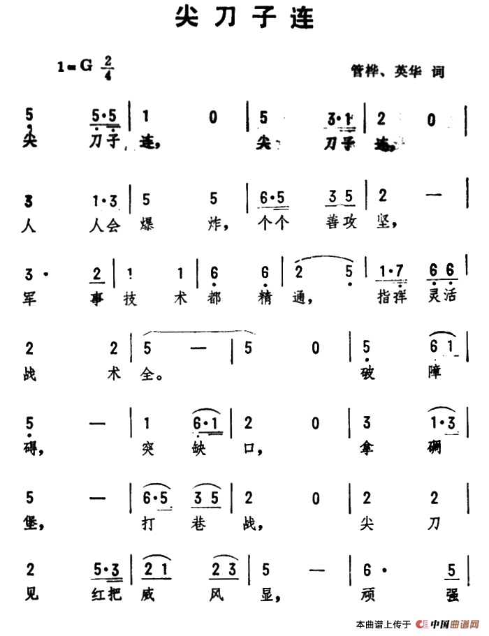 关于《尖刀子连》曲谱的评论