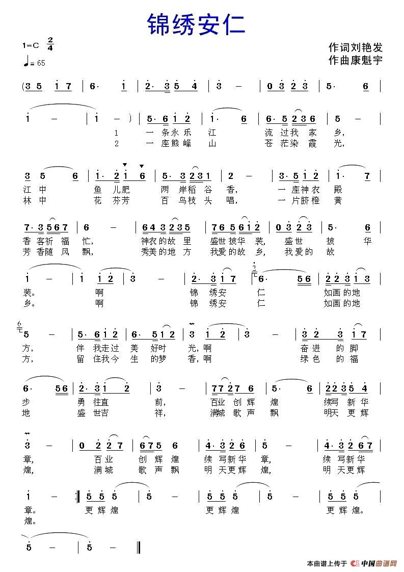 关于《锦绣安仁》曲谱的评论