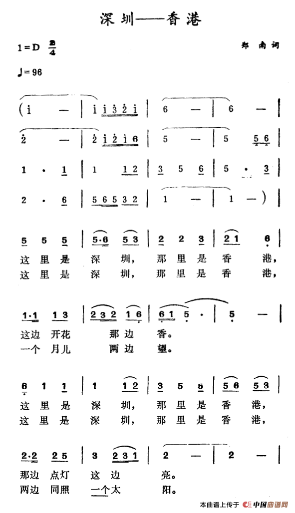 关于《深圳——香港》曲谱的评论